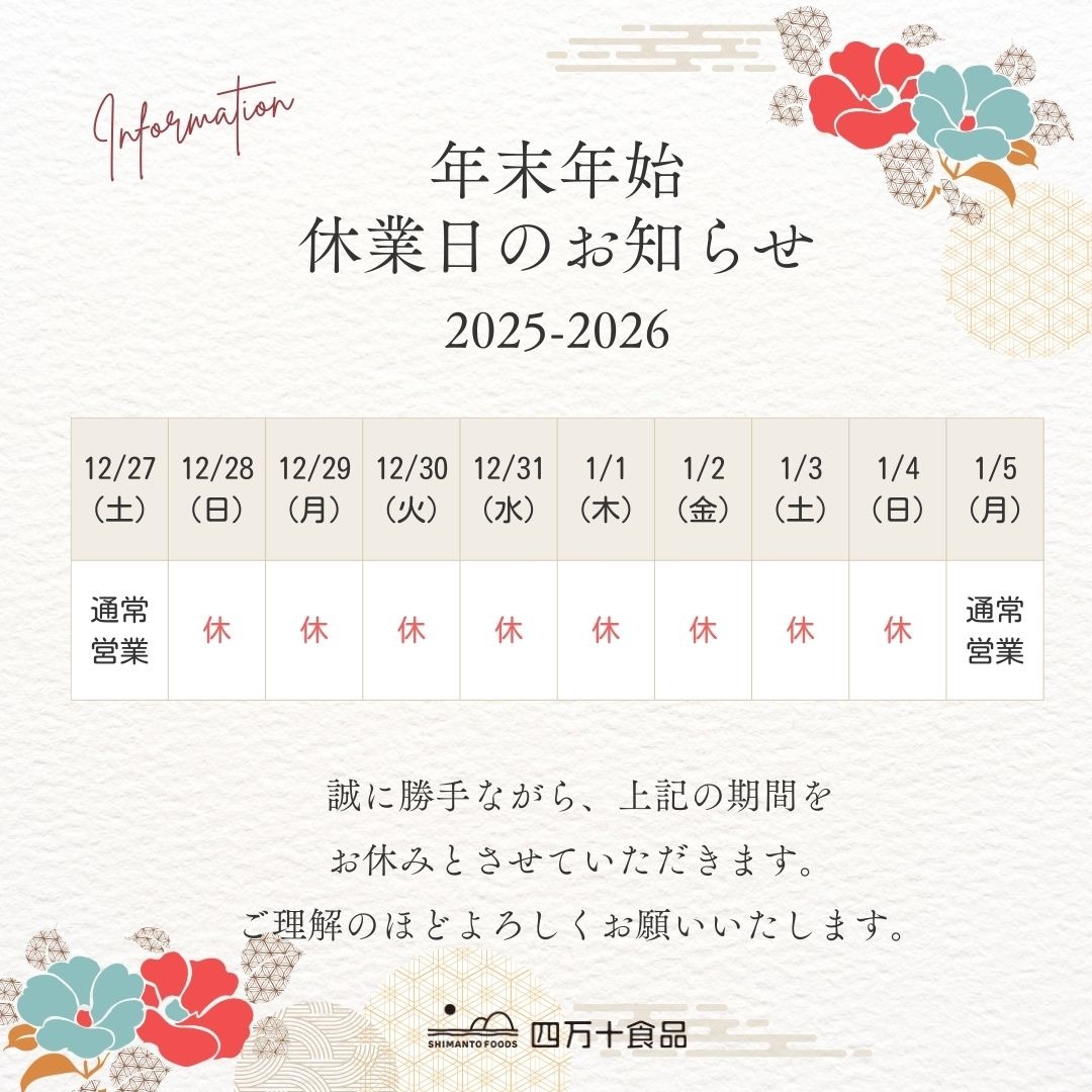 年始は2026年1月5日(月)より通常営業とさせていただきます。