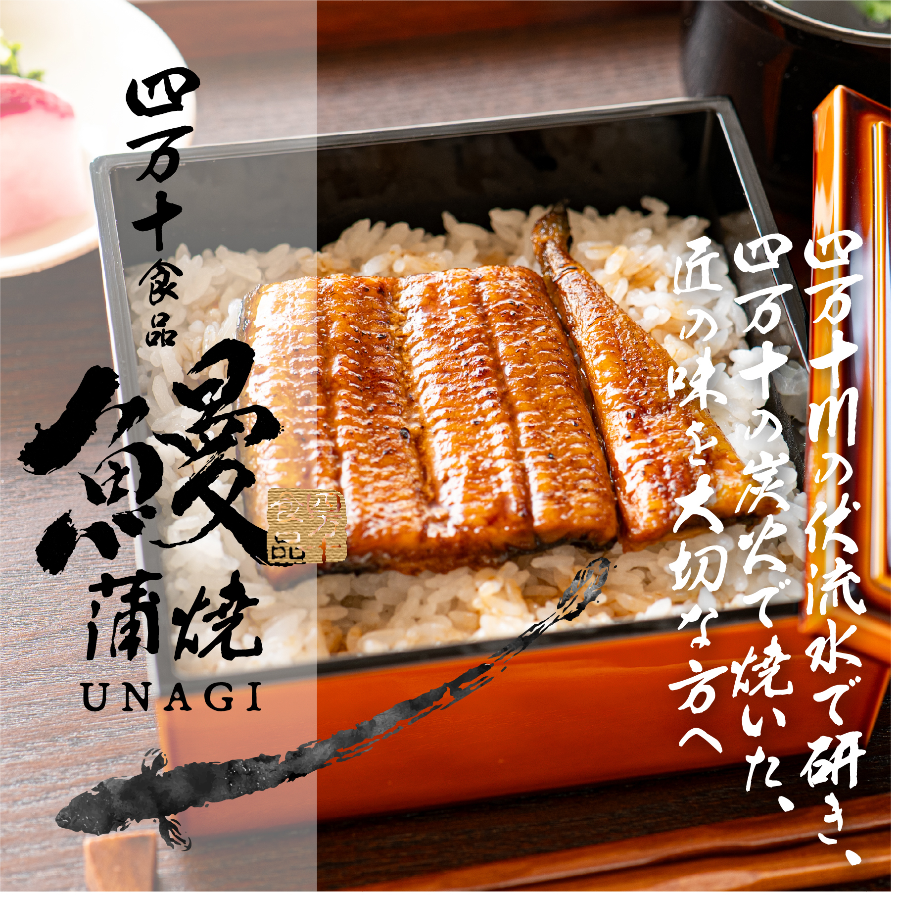 徹底した管理のもと、水質や餌にまでこだわり丹念に育てられたうなぎは、程よい脂のりと上質な旨みが特長。「本当に美味しい鰻をお届けしたい」という想いが込められた素材の良さとふくよかな味わいを、心ゆくまでご堪能ください。